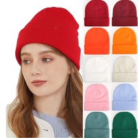 Gorro de mujer, venta al por mayor, gorros de esquí de Color puro acrílico de punto liso en blanco con logotipo personalizado, gorros cálidos de invierno para hombres, gorros